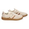 Con franjas laterales y un talón trasero decorado con atractivos dibujos, estas zapatillas son perfectas para cualquier ocasión informal. La suela plana lisa en color caramelo ofrece una base sólida y elegante, mientras que el cierre frontal con cordones asegura un ajuste perfecto. El fondo en un suave tono beig complementa su diseño, haciéndolas versátiles y fáciles de combinar con tu guardarropa. ¡Dale a tus pies el estilo que merecen!