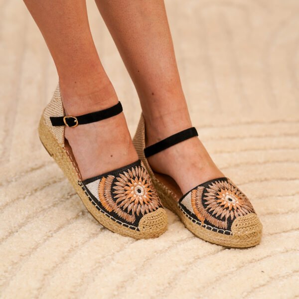 Sandalia de cu?a de yute para mujer comodas y elegantes dise?o de flores bordadas en la pala y cierre de hebilla ideales para primavera-verano.