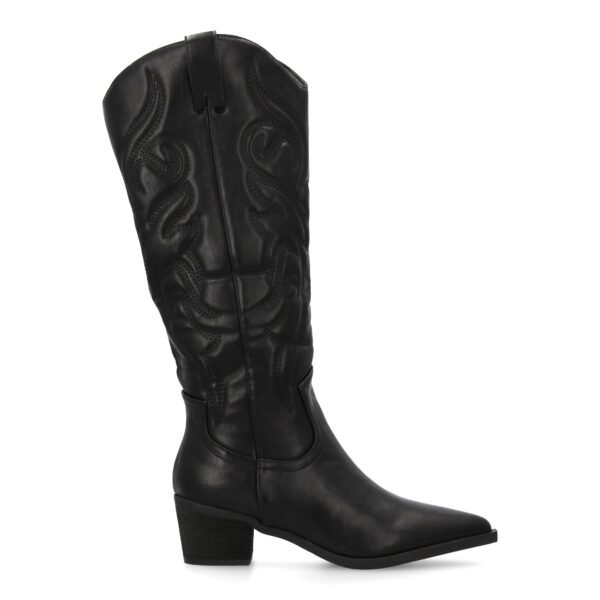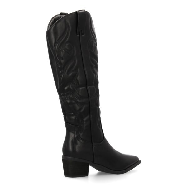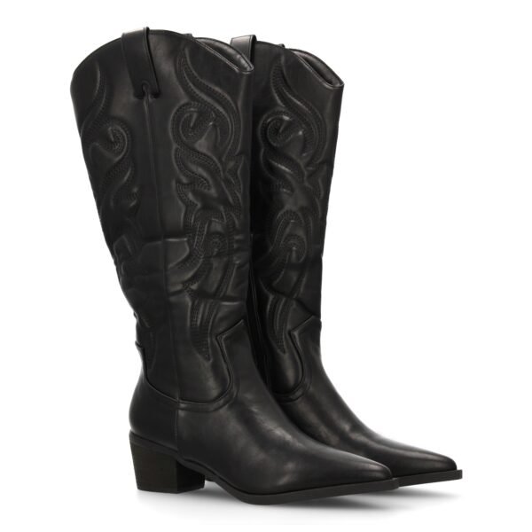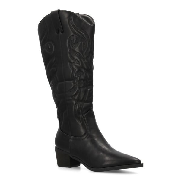 Bota cowboy de ca?a alta con bordados decorativos y punta fina. Tac?n ancho c?modo cierre de cremallera ideal para mujer temporada oto?o invierno.